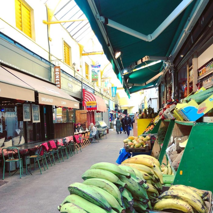 Slå dig ner på små mysiga restauranger med lite hål i väggen-stuk inne på marknaden, lite bohemian chic och väldigt ”inne” enligt Londonborna.