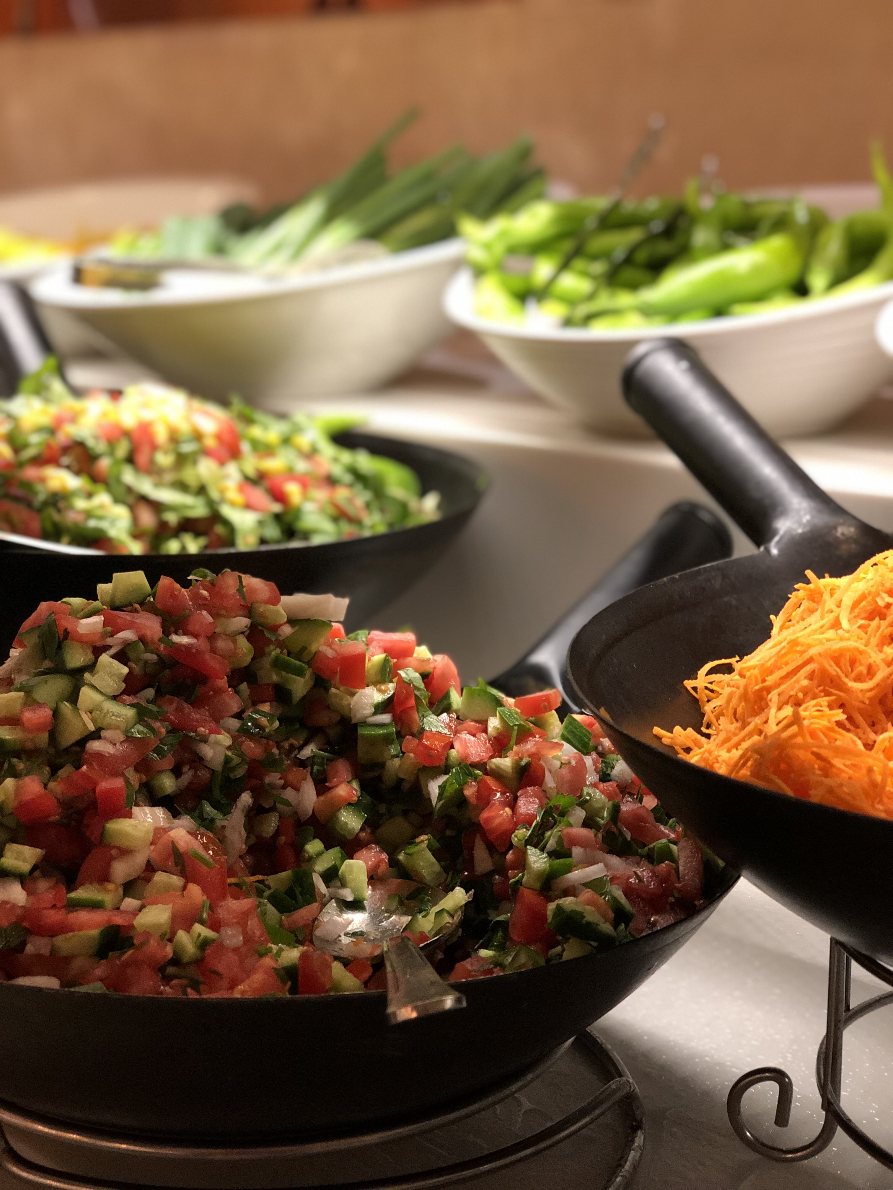 Hotellets bufférestaurang har en minibuffé för barn med anpassade rätter i lagom höjd så att de själva kan ta mat. Perfekt!
