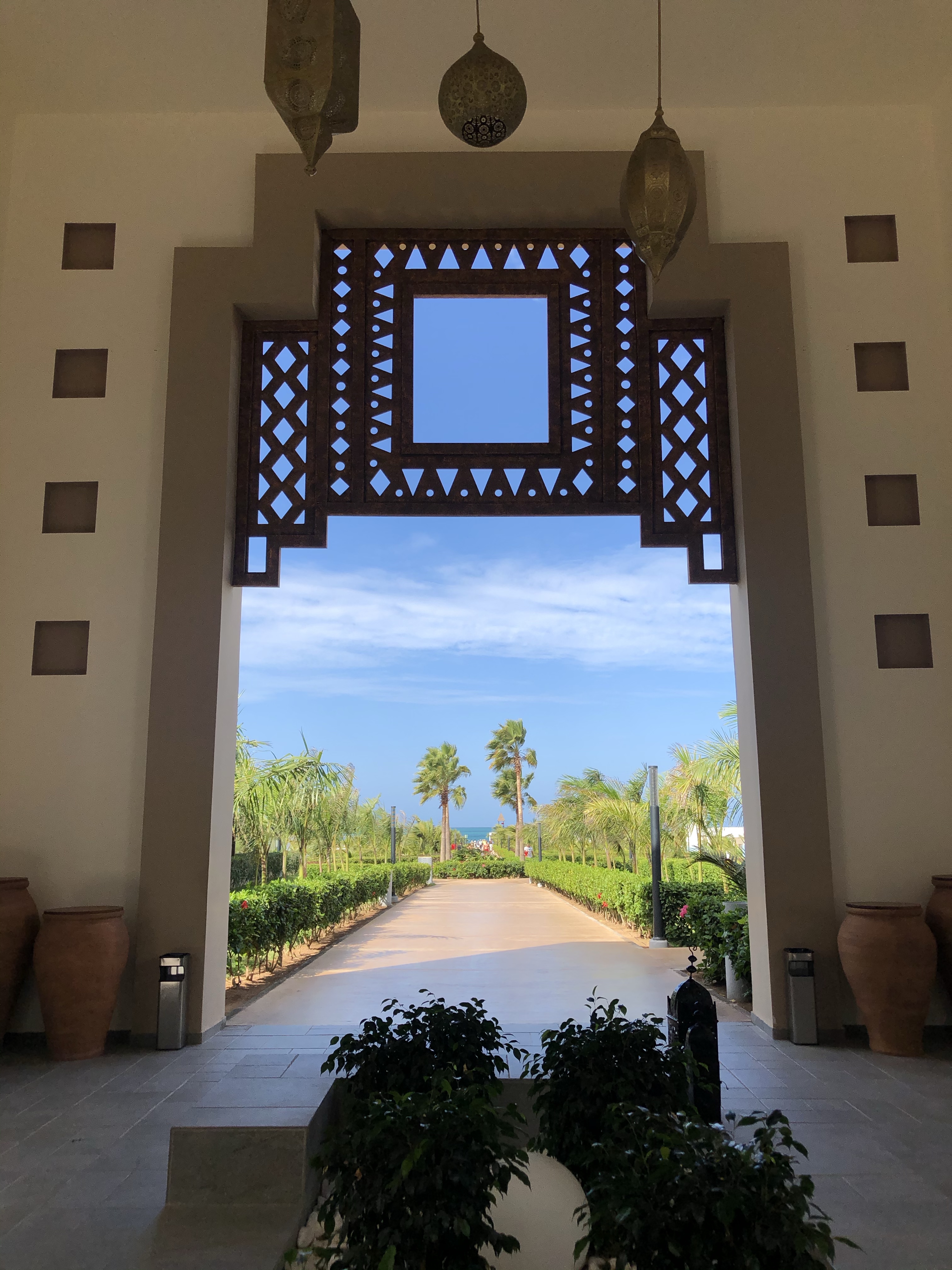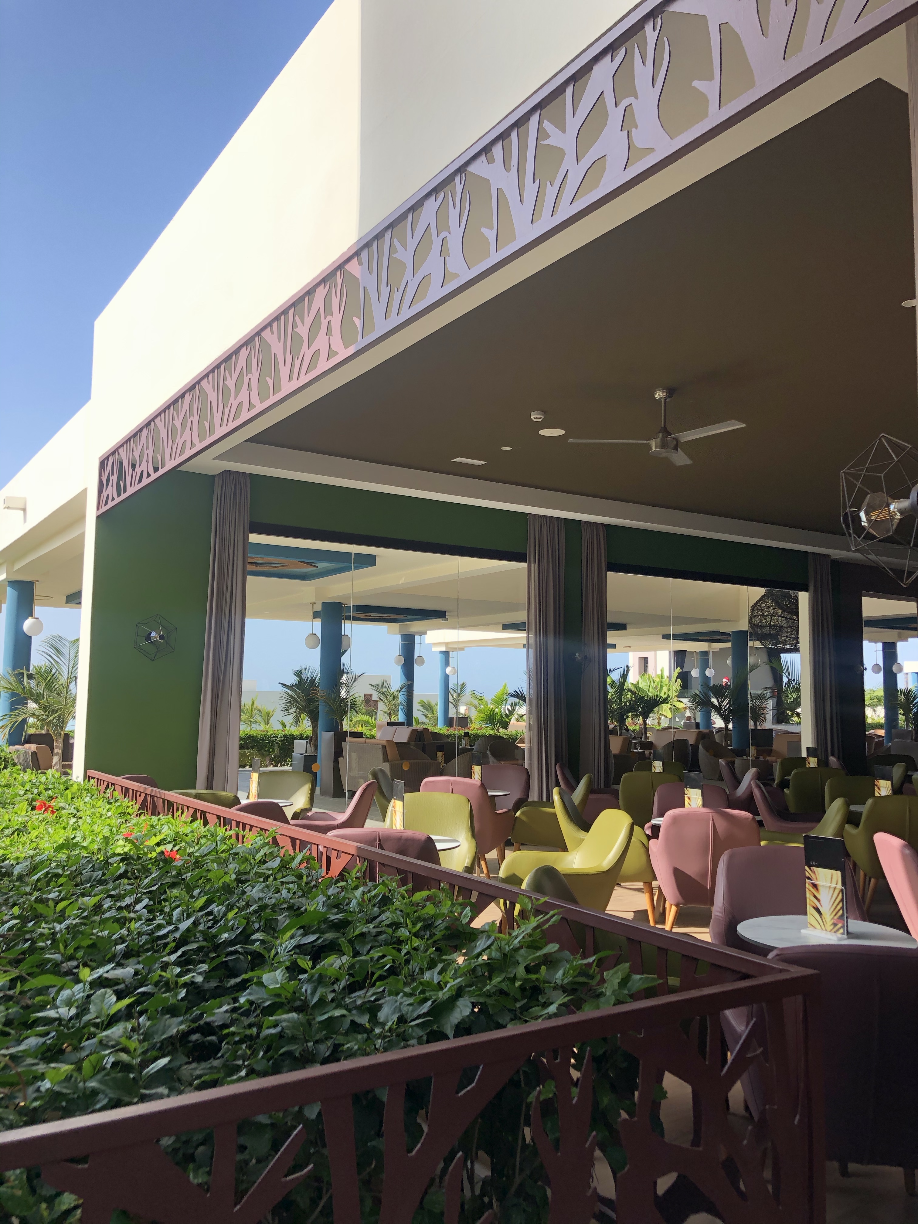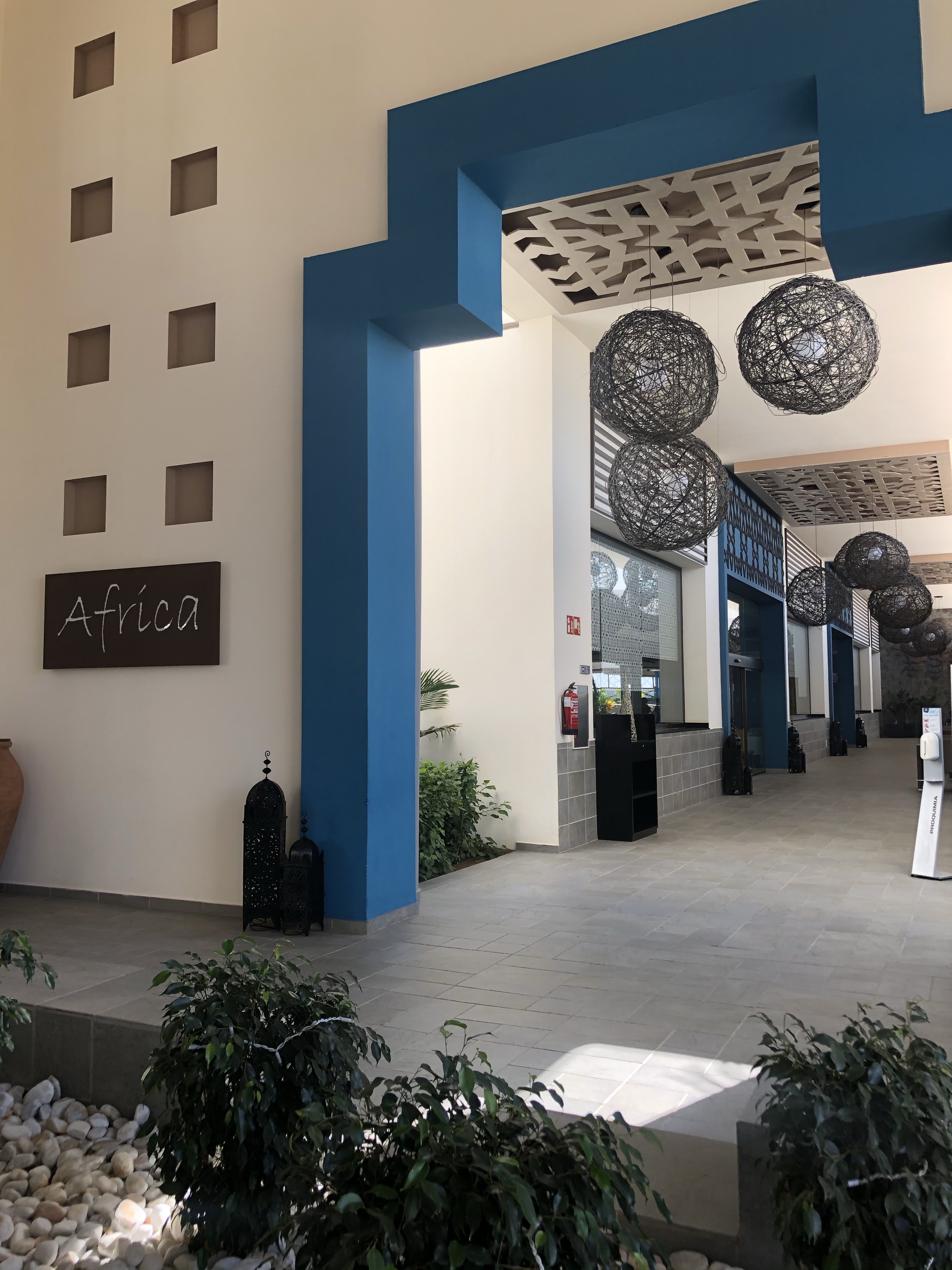 Det finns en stor öppen och luftig lobby i traditionell stil med vackra valv där vinden och fläktarna håller temperaturen (istället för luftkonditionering) på en behaglig nivå. Poolområdet har stora maffiga pooler i vackra formationer och en vacker trädgård.