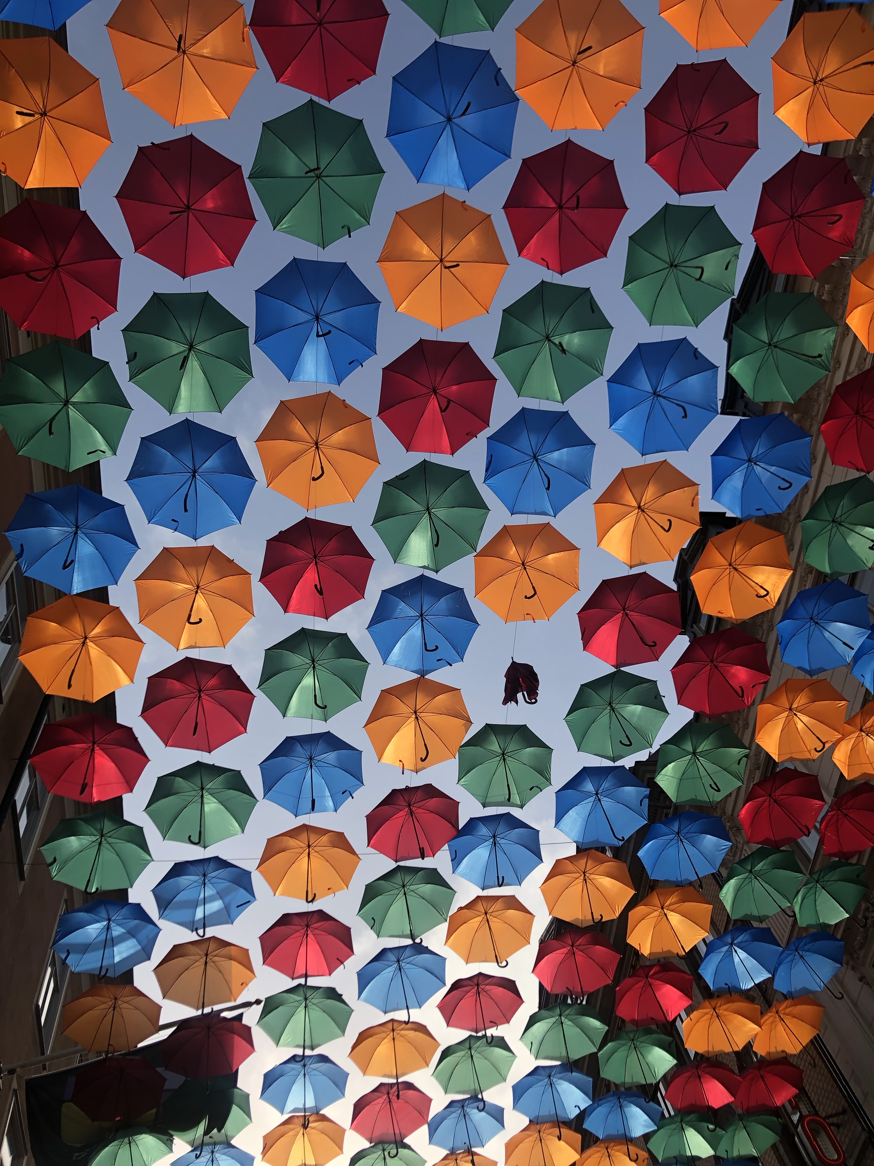 Konstprojektet – The Umbrella Project finns över världen som en härligt färgglad himmel av paraplyer. Projektet startade i Portugal som en konstinstallation under en festival i staden Águeda 2012.