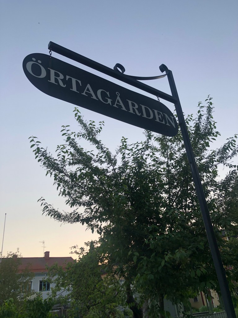 På en liten kvällspromenad i den ljumma junikvällen såg vi en liten skylt med texten Örtagården, alltid öppet. Välkomna!